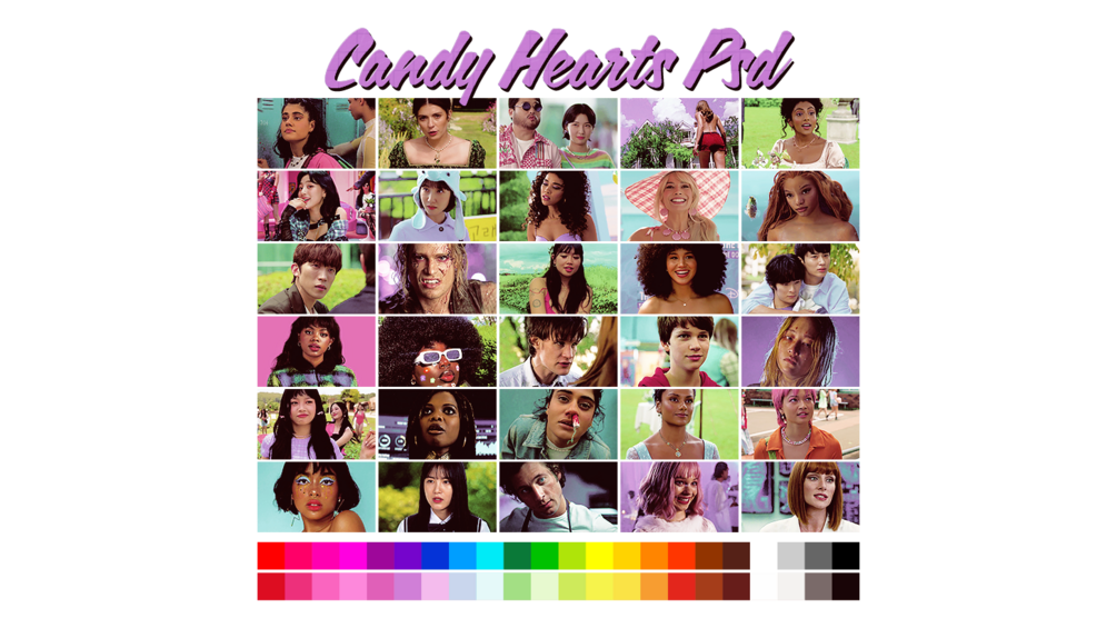 💗 a candy hearts inspired coloring psd with shades of chalky greens, blues, purples and pinks.